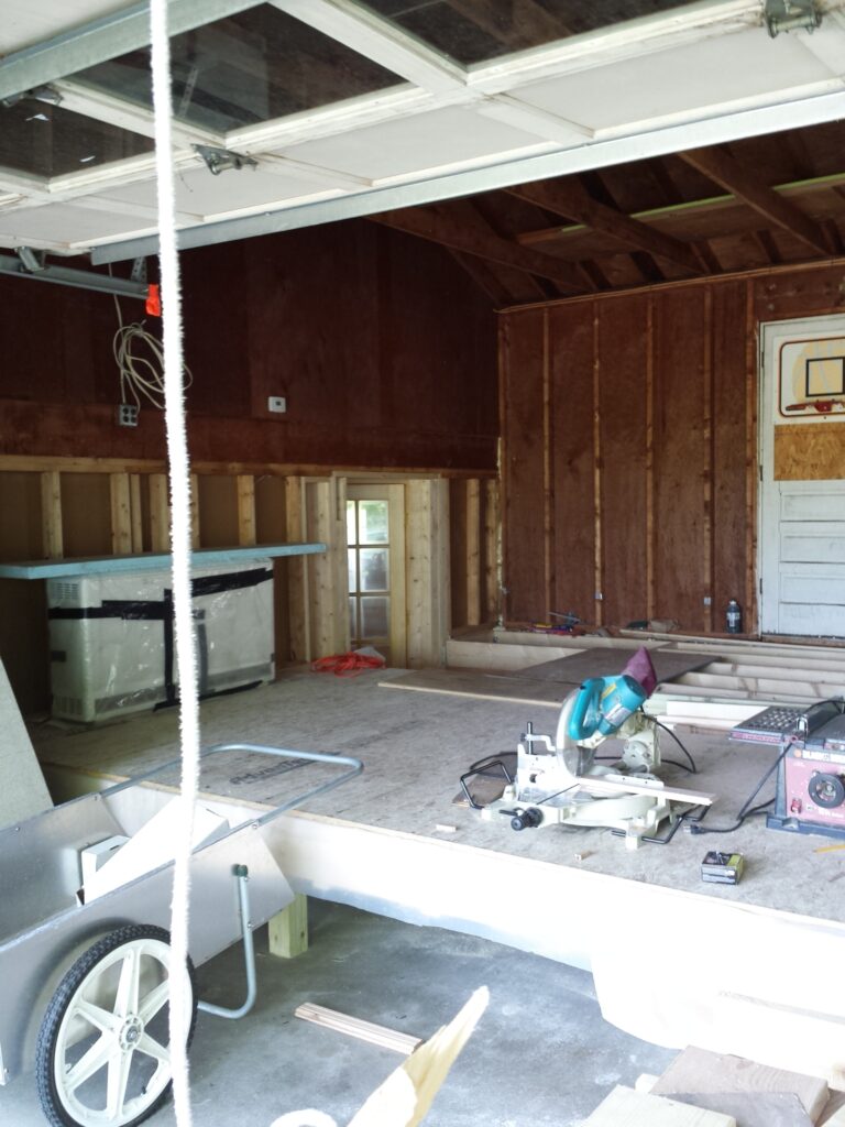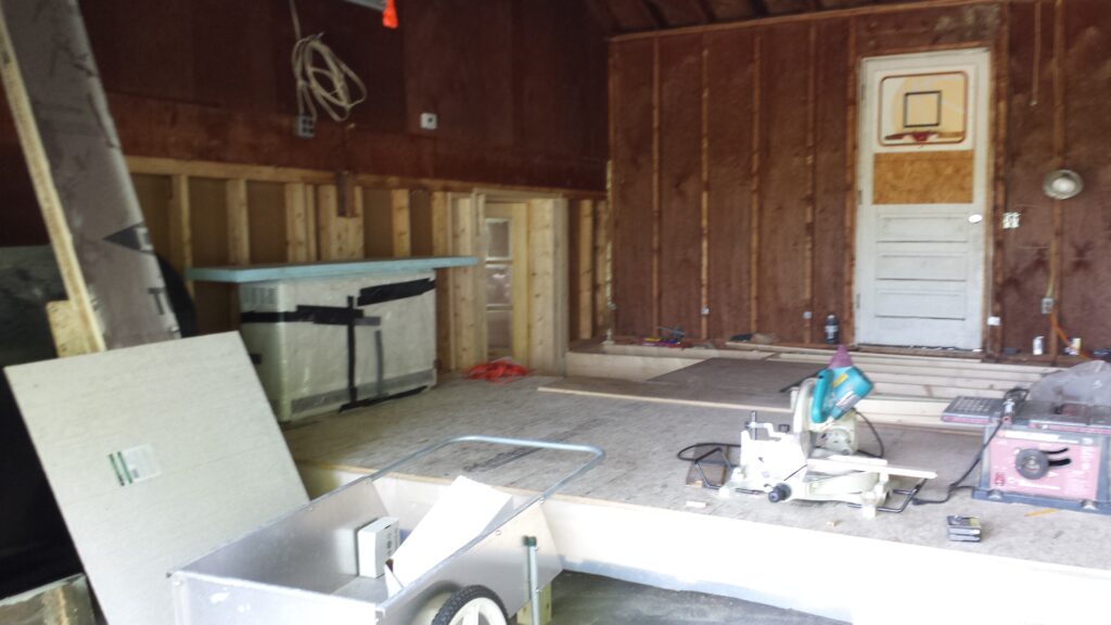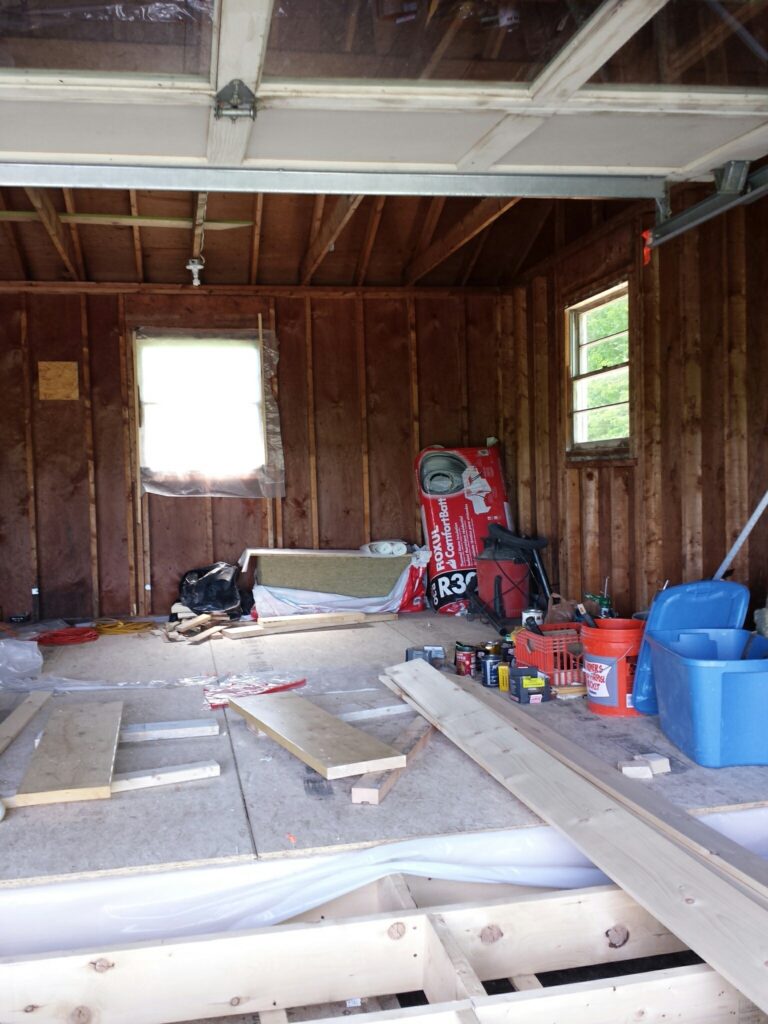 A few years ago (has it been that long!?) Northern Light moved into its new home in Topsham. A raised ranch with an attached garage. We cleaned it up, sanded and buffed the hardwood floors, painted the rooms over with fresh paint and did all kinds of repairs. We have been having regular practice and retreats for some time now. However the current dharma room is sort of small. Our intention has always been to convert the attached garage to a much larger and comfortable dharma room. This year we began that conversion. Exciting and Wonderful!