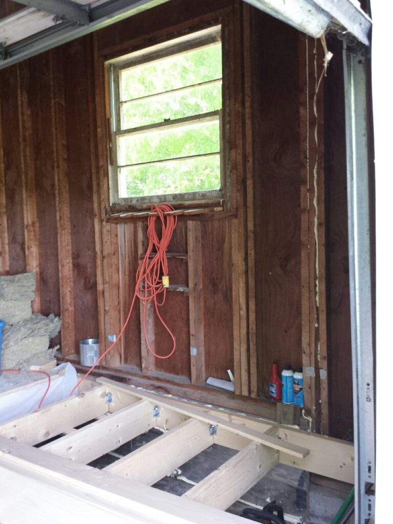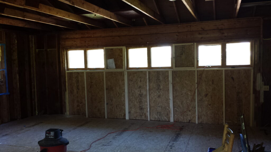 We have cut an access door into the main building. It now has a nice door and steps to allow entry in and out. We put down stringers and a sub-floor and it doesn’t have any squeaks! Probably one of the more important things we did, with winter fast approaching, was to take out the existing garage door and replace it with a lovely wall and clerestory windows. Our progress has been great! We will be continuing our construction, adding in more windows and a ceiling. As well as wiring for electrical outlets and lighting. Insulating walls and putting up sheetrock. It feels very nice to see the accomplishments we have made and we are very encouraged. This will greatly help with retreats and regular practice and we can have more people join us. We thought it would be nice to share this information and some pictures to show what we have done.