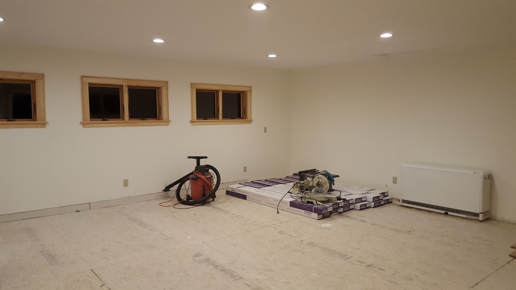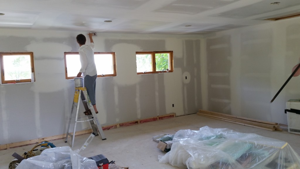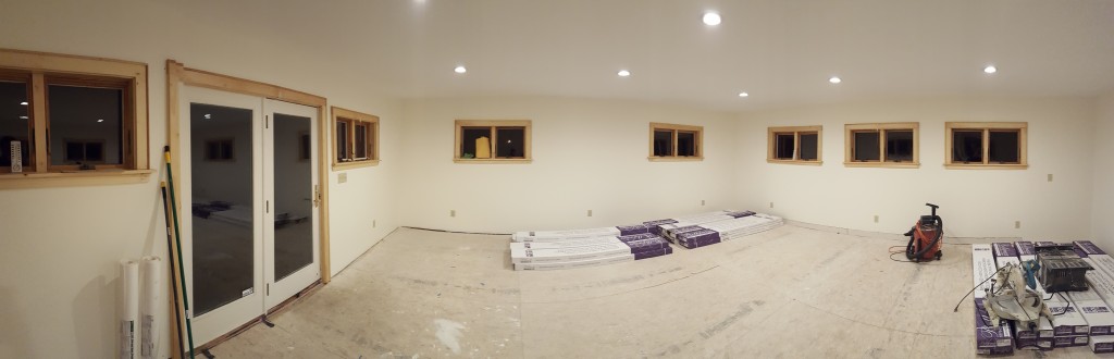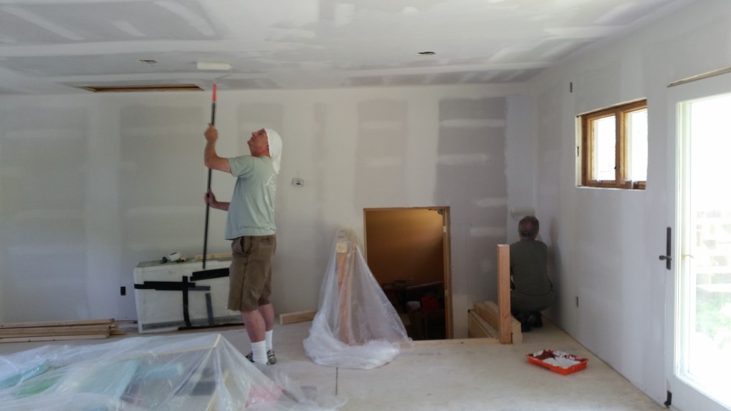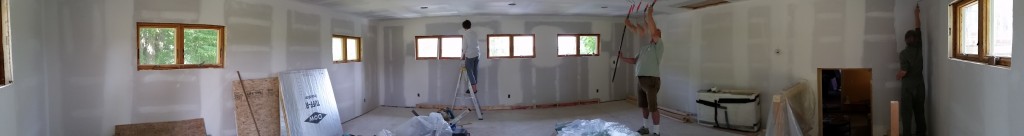 Some updates! It’s been a while I know but check out these four pics of the new room. On Aug 29th we painted a primer coat in preparation for a final coat of paint. Looks good right?! I kind of like the panorama of the whole room.
